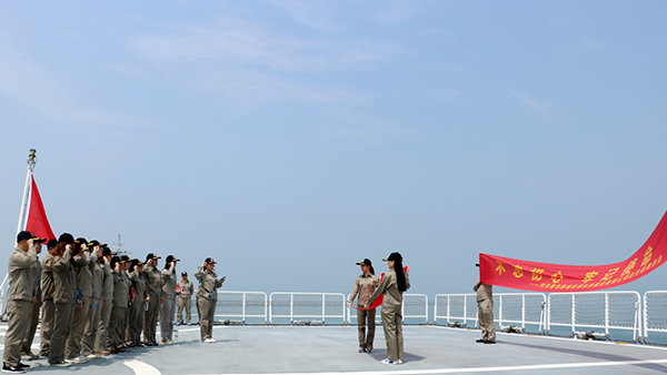 活動中,大家一起參觀了軍艦,并在軍艦上舉行了2018年度優(yōu)秀共產(chǎn)黨員表彰和黨員示范崗授牌表彰儀式。隨后,公司全體黨員重溫入黨誓詞,站在甲板上,大家舉起右手、握緊拳頭莊嚴(yán)宣誓,感悟今日黨員之責(zé)任,更加堅(jiān)定黨員的理想信念。