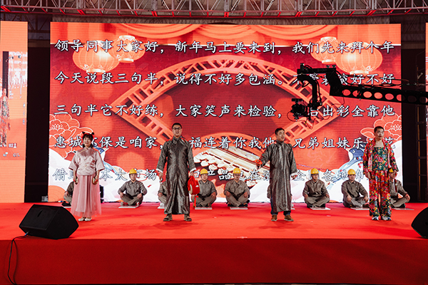 5點(diǎn)30分,文藝晚會(huì)正式開始。創(chuàng)意節(jié)目精彩紛呈,全場(chǎng)氛圍熱烈火爆。生產(chǎn)管理部的三句半編排讓人倍感新鮮,情景劇“惠城奇幻夜”天馬行空,舞美效果將晚會(huì)推向高潮,小品“相親”表演讓人捧腹,戲曲與勵(lì)志歌曲串燒HIGH翻全場(chǎng)……