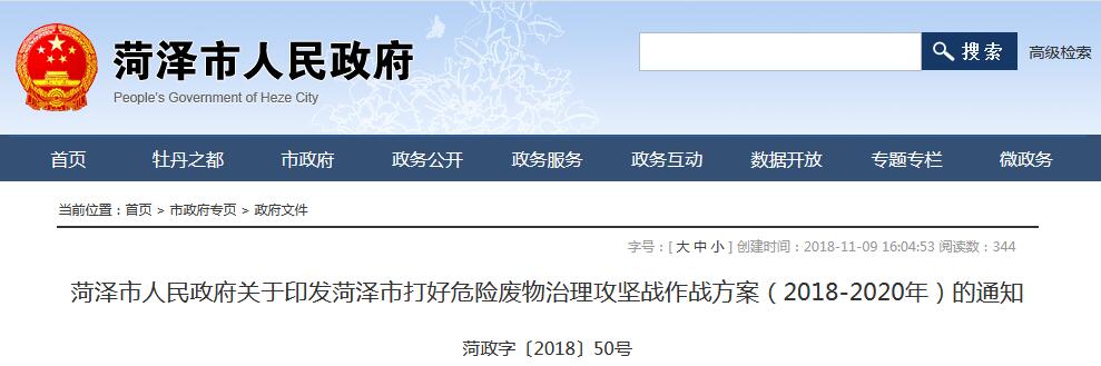 全文|《菏澤市打好危險廢物治理攻堅戰作戰方案(2018-2020年)》